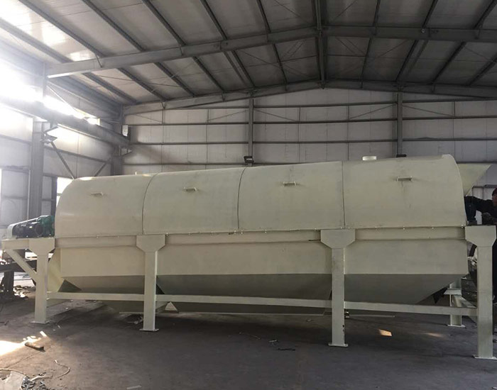 圓筒回轉(zhuǎn)篩根據(jù)不同分級要求,其分級級數(shù)一般從細(xì)到粗為1-4節(jié),物料從細(xì)到粗分別從第一節(jié)到后一節(jié)篩網(wǎng)篩出,大于后一節(jié)篩網(wǎng)孔的物料從出料口排出。